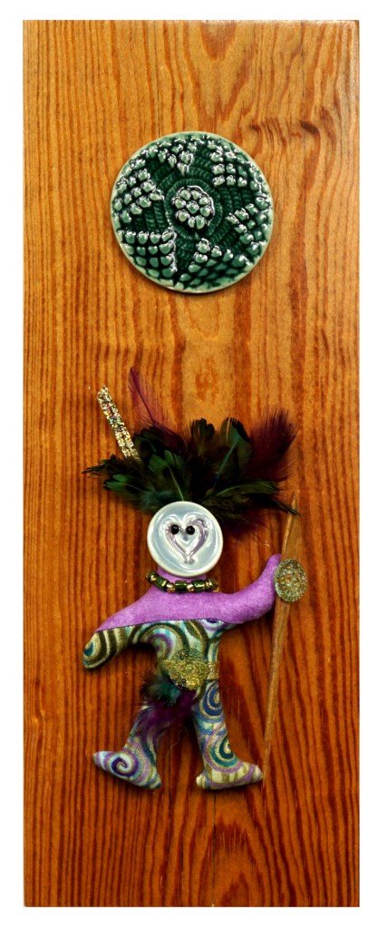 These talisman each represent a powerful purpose. I put the them on my 1920’s restored wood pieces and add my handmade ceramic medallions to create one-of-a-kind wall art.